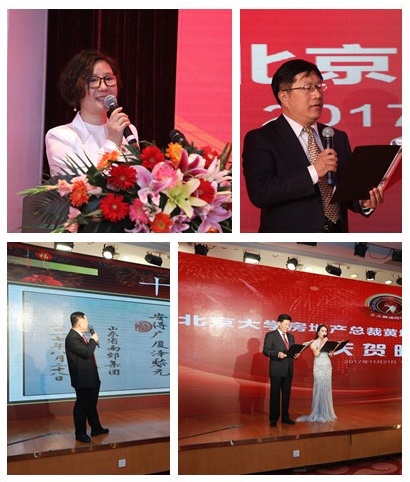 北京大學房地產總裁黃埔同學會秘書長李陽,中國房地產業營銷協會會長朱曙東,北大黃埔同學會首任執行會長、山東南郊集團總經理董廷之,北大黃埔同學會首任執行會長、江蘇泰狄信置業有限公司總經理陳飛主持。